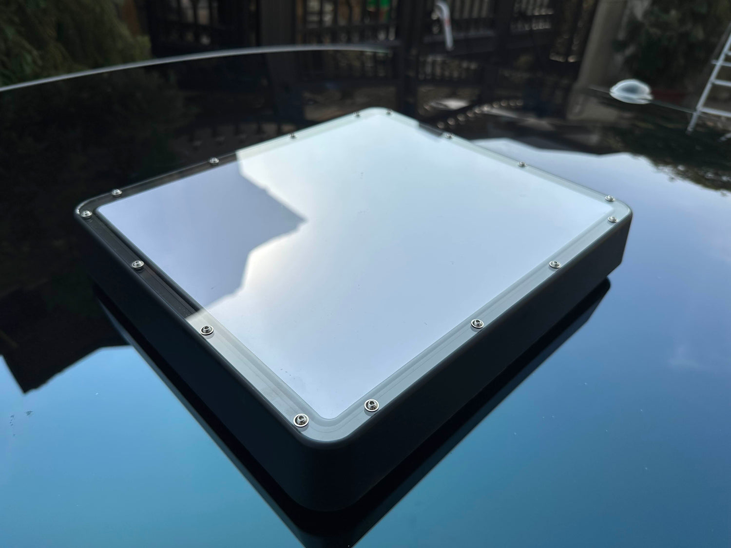 Paired with our custom made PMMA radio transparant cover, there is no effect on signal, even on stormy days. (top cover prototype shown)
